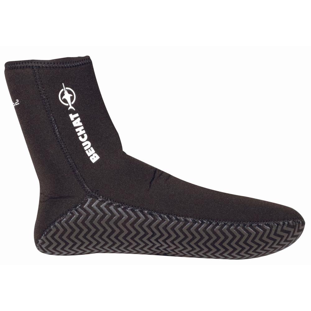 he Beuchat Sirocco Open 3mm Socks are your ideal choice for comfortable and practical diving and snorkeling in New Zealand’s waters. Made from flexible and lightweight neoprene, these socks offer a snug fit that keeps your feet warm without feeling bulky. They feature PU protection on the instep and Supratex protection on the soles, making them much more durable and resistant to wear and tear. Designed to provide excellent protection against sharp rocks and coral, these socks are perfect for Kiwi divers exploring reefs and kelp forests. Their sleek look, combined with protective features, ensures reliable performance and comfort during your underwater adventures.