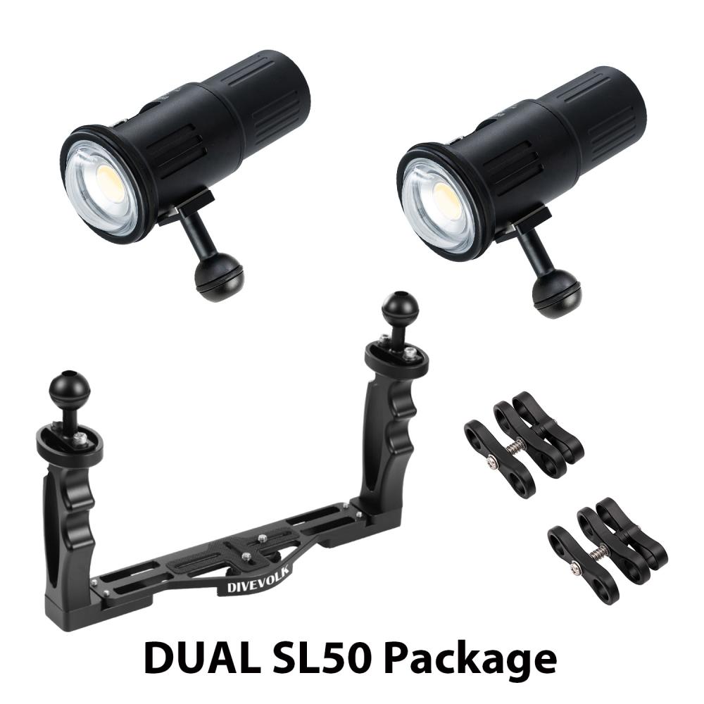 DiveVolk Dual SL50 Video Light Package – Dual HandleTray, 2x SL50 Lights & Clamps