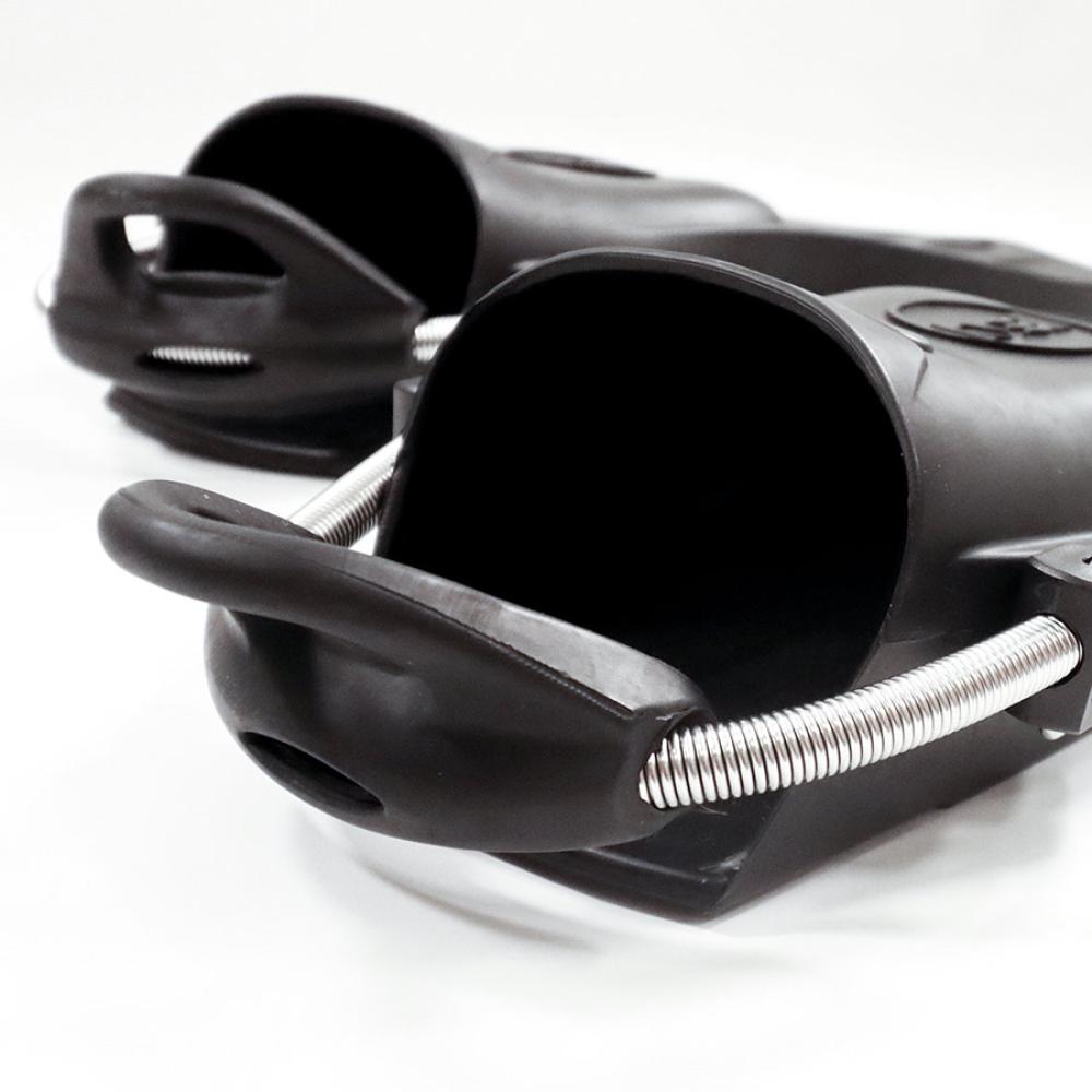 Spring straps with comfortable heel pads keep the feet securely held in place and these spring straps can be removed and changed easily with everyday tools if required.