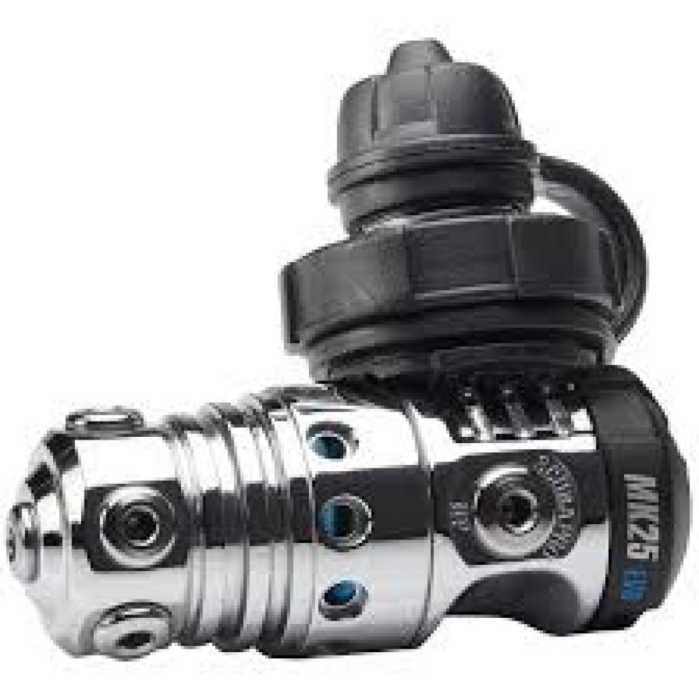 At the core of the MK25 EVO is a balanced piston mechanism, providing ultra-low breathing resistance and efficient airflow, even under extreme conditions. The DIN connection ensures a secure attachment to high-pressure tanks, while the XTIS (Extended Thermal Insulating System) helps prevent freezing in cold-water dives. Its compact, corrosion-resistant body offers long-lasting performance, making it suitable for both recreational and technical diving.