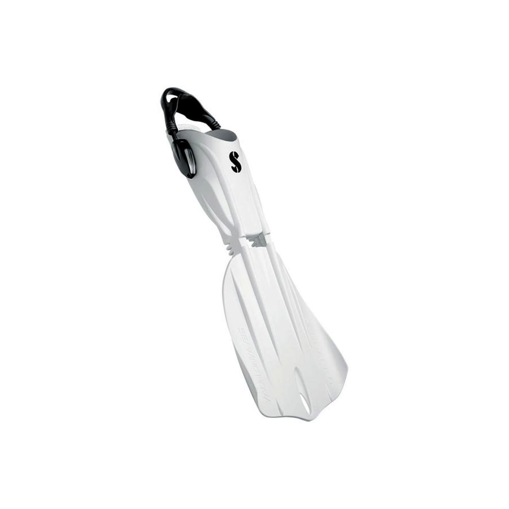 The Seawing Nova combines classic Scubapro fin technology with the latest innovations in hydrodynamic design. Delivering the power, acceleration, and maneuverability of a blade fin with the kicking comfort and efficiency of a split fin, the unique articulated hinge design enables the entire wing-shaped blade to pivot and generate thrust. This enables you to rocket through open water at top speed, or ease in and out of tight spots in the reef with total control and with little to no ankle or leg strain. You'll be hard-pressed to find a fin that's more comfortable to wear or fun to kick when cruising the underwater world. Offered in lots of colors to mix and match with the rest of your dive gear. Made of durable modern Monprene®